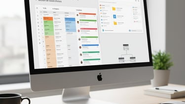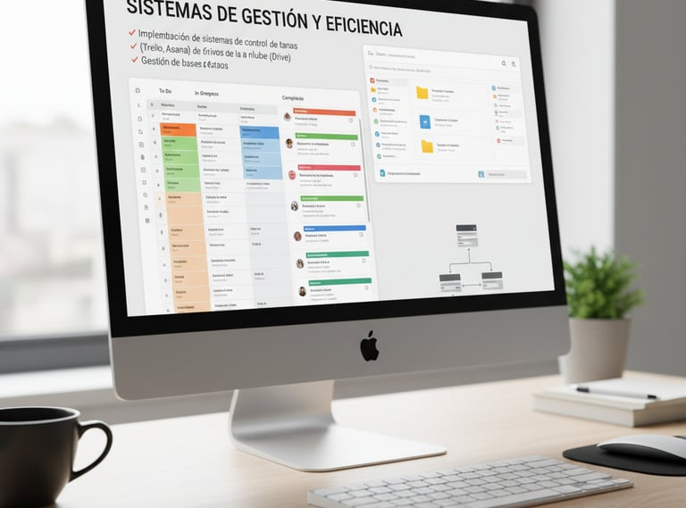 Implementación de sistemas de control de tareas (Trello, Asana), organización de archivos en la nube (Drive), gestión de bases de datos.