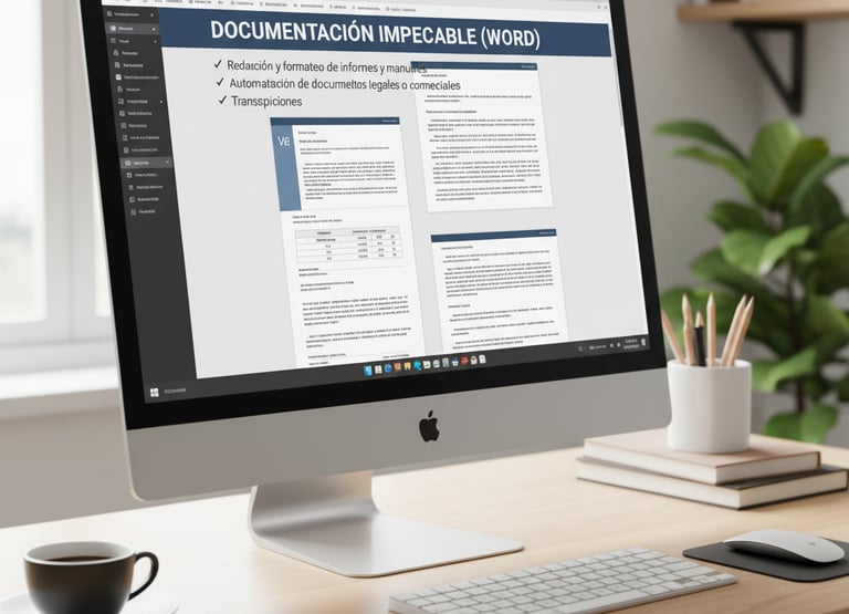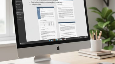 Redacción y formateo de informes y manuales, automatización de documentos legales o comerciales, transcripciones.